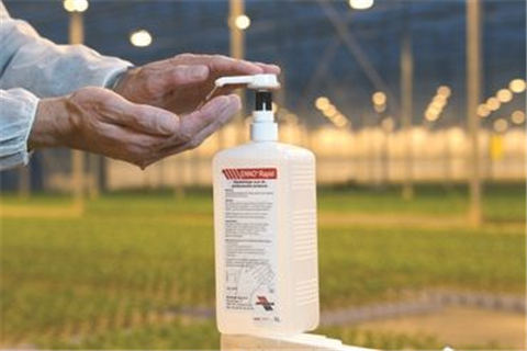 在開(kāi)始溫室內(nèi)的工作之前使用 Menno H 對(duì)手部進(jìn)行消毒,從而減少傳播疾病和病毒的風(fēng)險(xiǎn)。它是溫室園藝中建議的重要衛(wèi)生措施之一。不僅在進(jìn)入溫室后,而且還要在上廁所、吸煙、休息和其他暫時(shí)離開(kāi)后重新進(jìn)入溫室或生產(chǎn)區(qū)域時(shí),立即對(duì)手部進(jìn)行清洗和消毒。